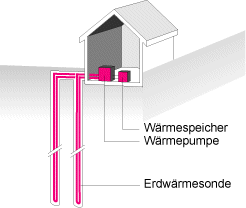 Erdwärmesonden. Dieses System wird zunehmend weniger verwendet.
